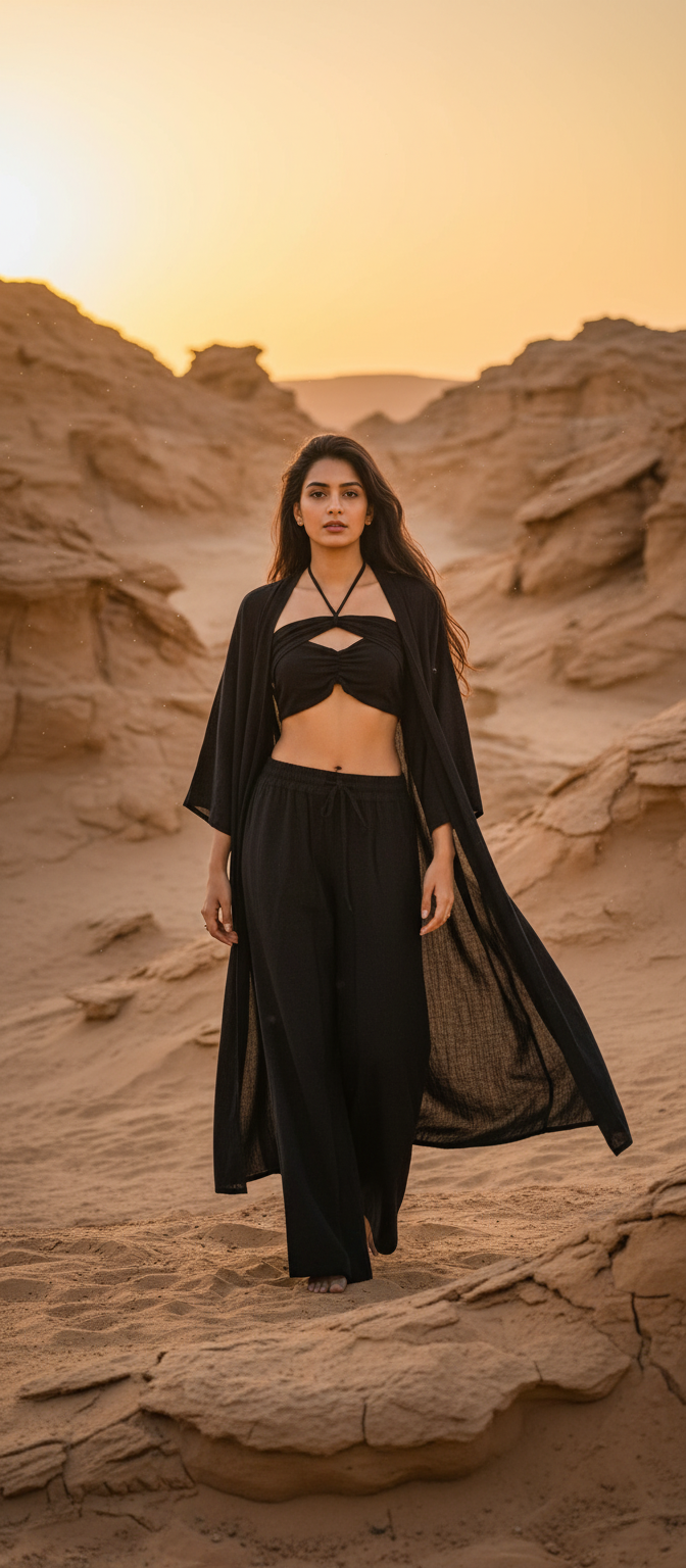 Designed to be worn together or styled separately, the set creates a balanced, relaxed silhouette that feels light and effortless. The fabric flows naturally, making it ideal for warm days, travel, brunch outings, and slow living moments.