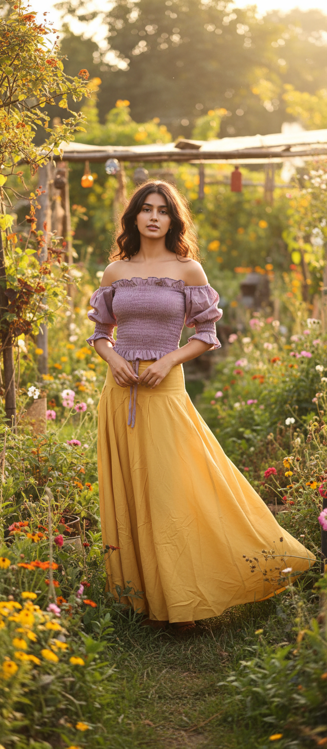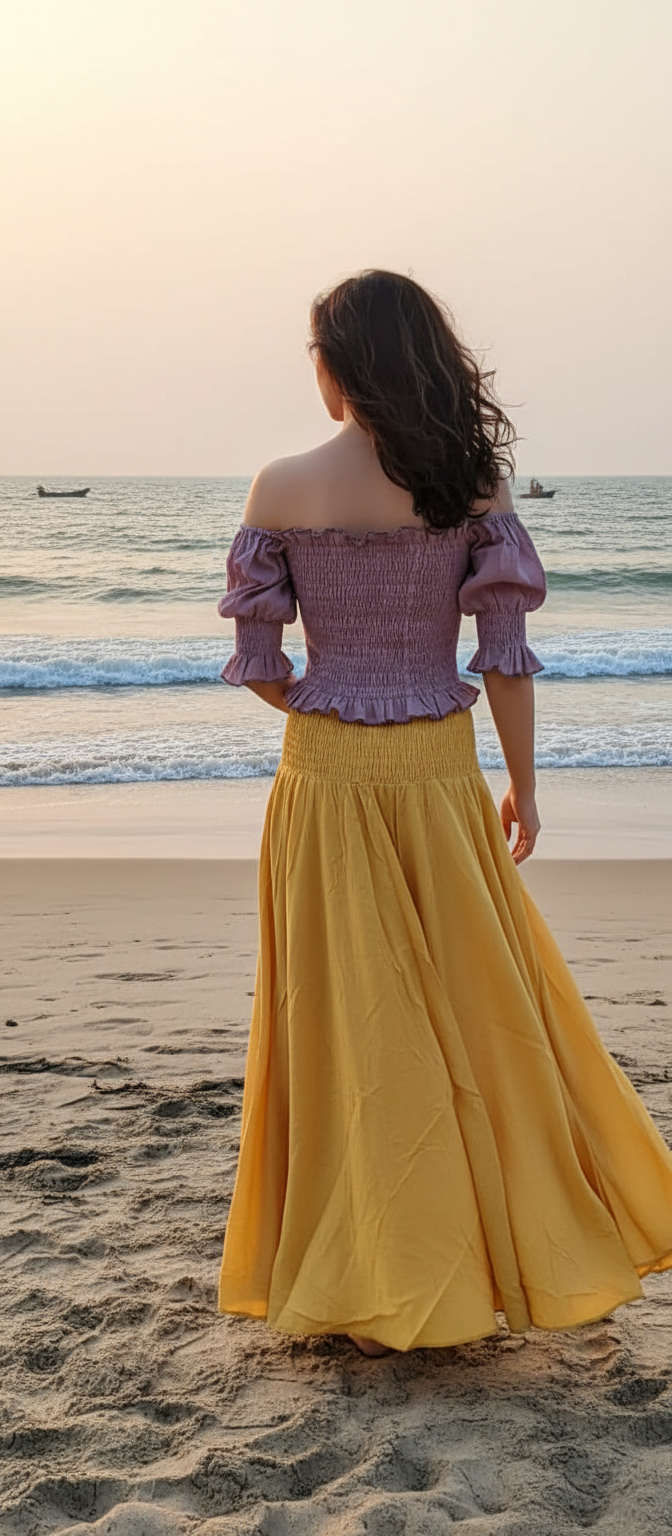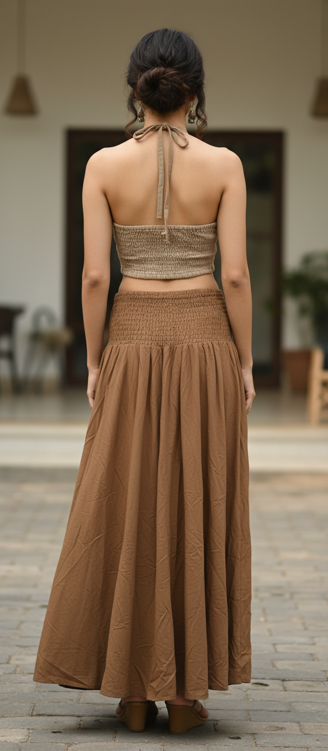 Easy to style with fitted tops, cropped blouses, or breezy shirts, the Meghna Skirt transitions seamlessly from casual daywear to elevated boho looks.