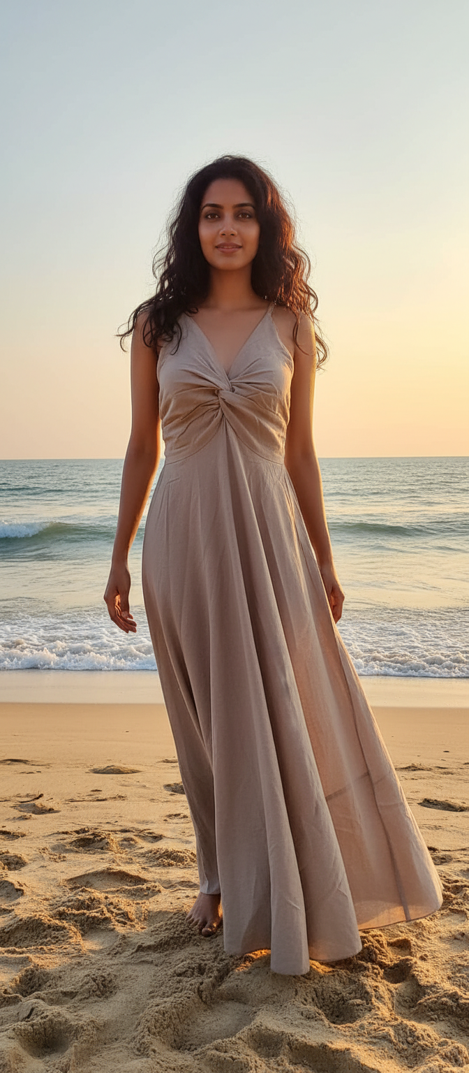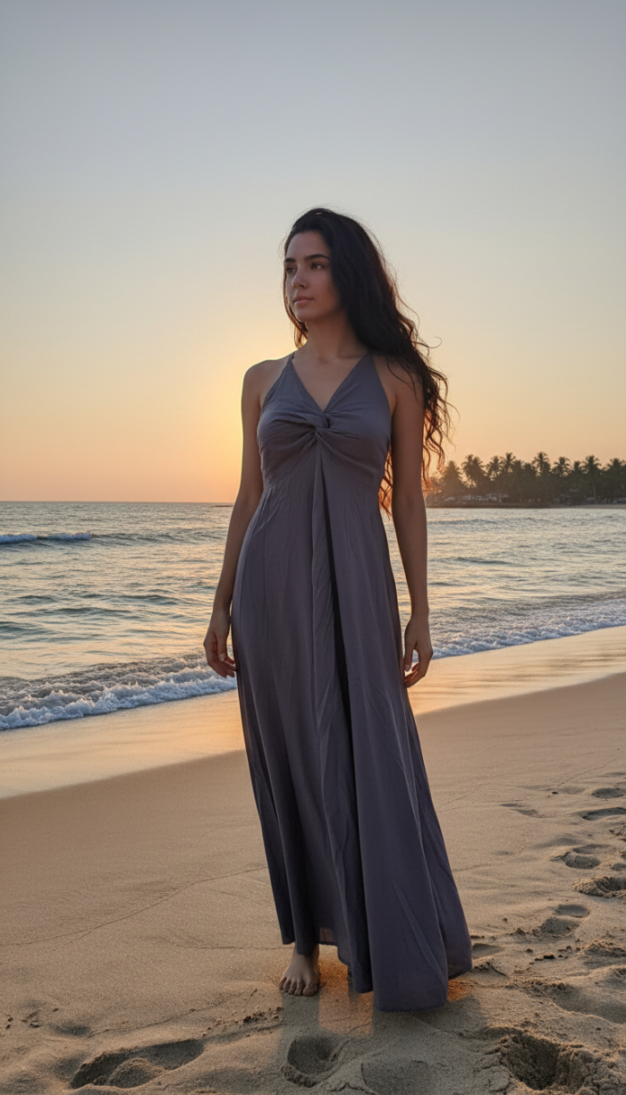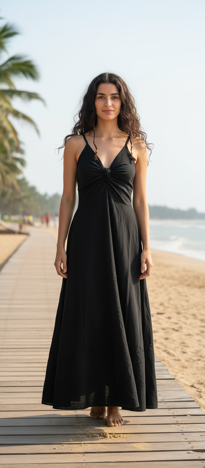 The Sanjana Plain Dress is a timeless essential designed for relaxed days and graceful evenings. Simple yet thoughtfully detailed, this dress reflects the true essence of free-spirited, luxury boho style.