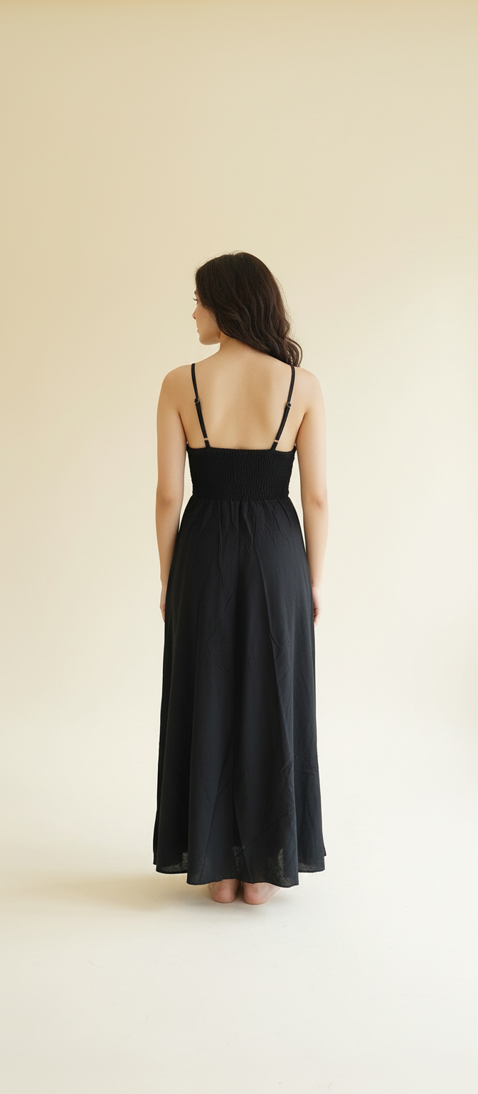 With its long, flowy silhouette and delicate noodle straps, this dress is perfect for brunch outings, beach holidays, resort wear, or slow summer days. Light on the skin and easy to style, it’s a piece you’ll keep reaching for.